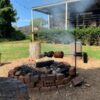 - You can swing your food away from the fire to carve, adjust or base your meat